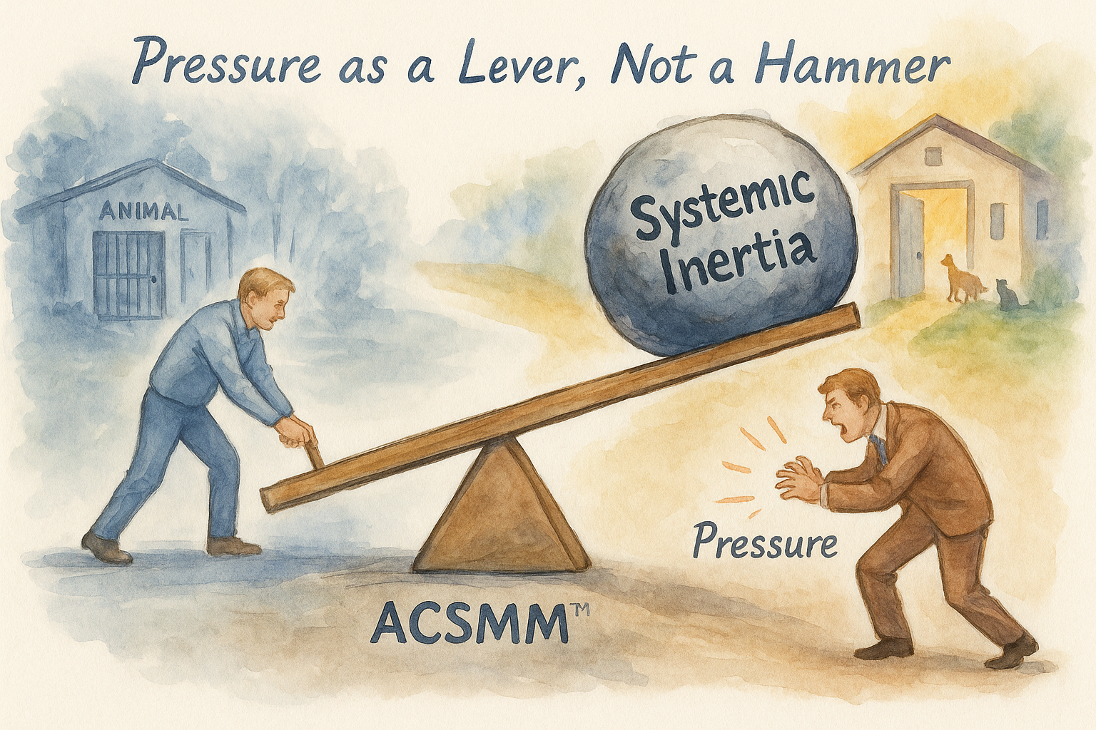 This article examines the core levers of pressure—political, financial, reputational, and community-based—that drive or inhibit transformation. It also introduces the Animal Care Shelter Maturity Model™ (ACSMM™ ) as a strategic, neutral tool that surfaces hidden barriers and builds the structural clarity needed for lasting reform.